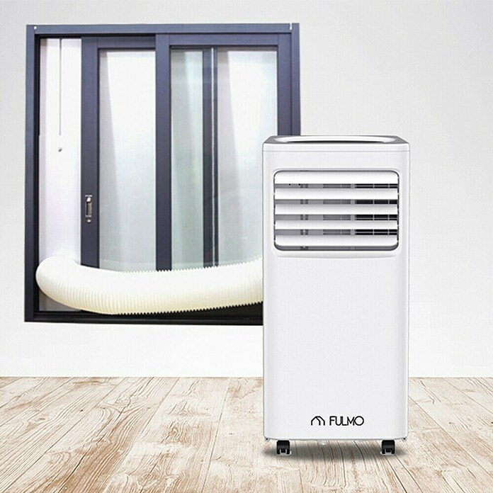 El aire acondicionado portátil Fulmo es un modelo práctico por su tamaño para acompañar las actividades en el interior en los meses más calurosos del año. Además este modelo incluye el kit para la salida de aire caliente por la ventana y el mando a distancia para poder regularlo con comodidad. El aire portátil Fulmo cuenta con ruedas para trasladar fácilmente si necesitas cambiar su orientación o llevarlo a otra habitación.