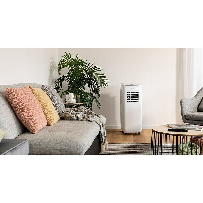 El aire acondicionado portátil tiene una capacidad de refrigeración de 7.000 BTU o 2,05 kW y es adecuado para habitaciones hasta 20 m² aproximadamente. La circulación de aire es de 300 m³/h. El aire acondicionado tiene la clase de eficiencia energética A+ y funciona con el refrigerante R290.