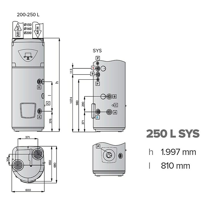 | Capacidad volumétrica | 250 l |