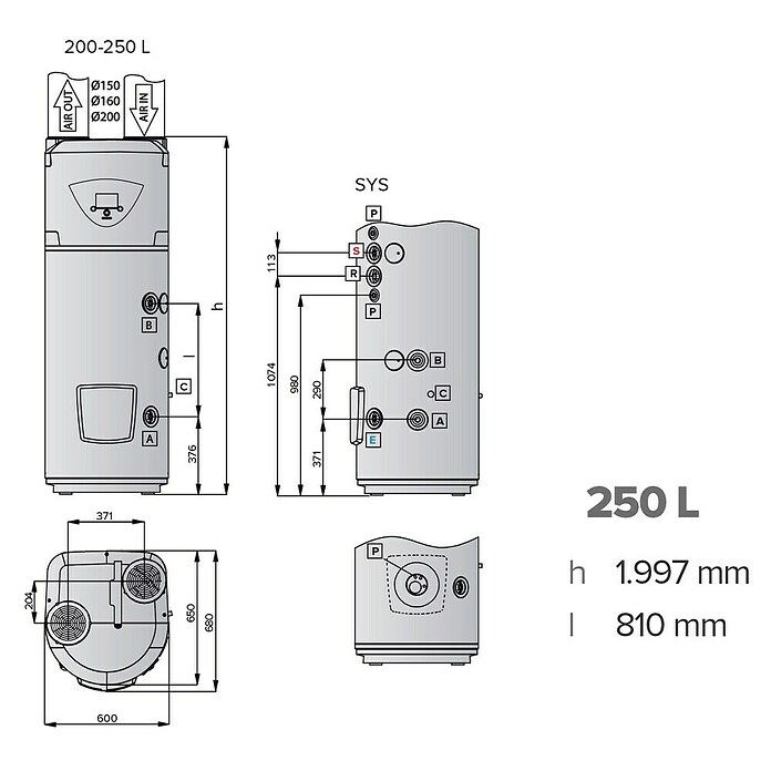 | Capacidad volumétrica | 250 l |