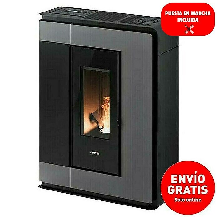 La estufa de pellets Arco combina diseño y funcionalidad, siendo ideal para instalar en espacios reducidos, gracias a su diseño compacto.