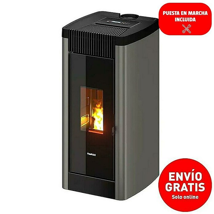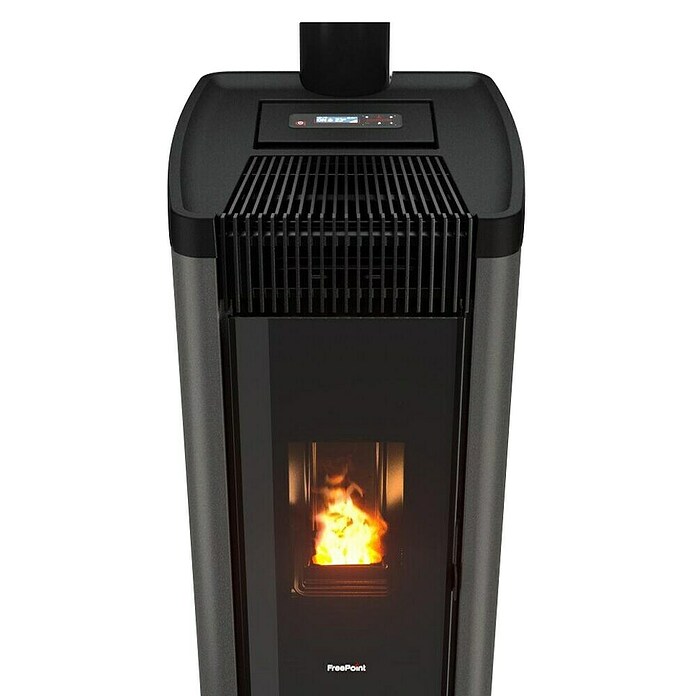 Elige la estufa de pellets Steel WiFi canalizable de FreePoint para disfrutar de una calefacción eficiente, silenciosa y conectada, con un diseño que complementa cualquier hogar moderno.