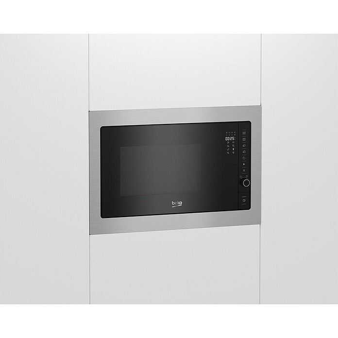 El microondas integrado BMGB 25332 BG de Beko destaca por su elegante diseño y su posible instalación encastrable o combinada con otros electrodomésticos, lo que permite tener libre de electrodomésticos la encimera. Es un modelo muy fácil de usar, dispone de apertura de la puerta mecánica con botón lateral y pantalla con controles táctiles. Permite configurar hasta 5 niveles de potencia de microondas y dispone de grill, función descongelación por peso, temporizador, inicio rápido, 8 programas de autococción y seguridad infantil. Incluye plato giratorio de 31,5 cm de diámetro.