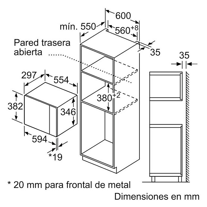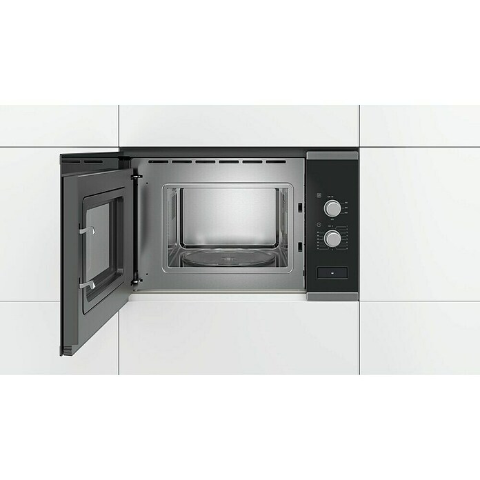 El microondas integrado BFL520MS0 de Bosch es una solución elegante para instalar encastrado en una columna de cocina. Con una capacidad de 20 l y plato giratorio de Ø 25,5 cm, nos aporta una gran versatilidad. Dispone de cinco niveles de potencia y temporizador de 0 a 60 minutos, que se pueden controlar gracias a los 2 mandos giratorios fijos. Fabricado con interior inoxidable.
