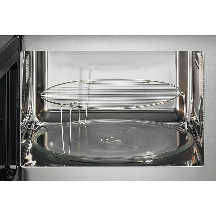 El microondas integrado MSB2548C-M de AEG destaca por su elegante diseño y su posible instalación encastrable o combinada con otros electrodomésticos, lo que permite tener libre de electrodomésticos la encimera. Gracias a su acabado inoxidable antihuellas, facilita su limpieza y mantenimiento. Es un modelo muy fácil de usar, dispone de apertura de la puerta con pulsador y pantalla LED con controles táctiles. Permite configurar hasta 10 niveles de potencia y dispone de función descongelación por peso, selector de potencia táctil, grill de 1.100 W, cocción de convección, seguridad infantil y señal acústica. Incluye plato giratorio de 31,5 cm de diámetro y parrilla grill.