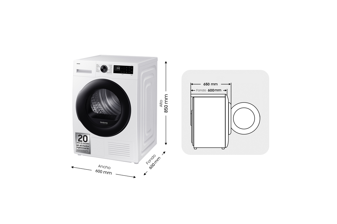 Prevención de arrugas, Nivel de secado, Tiempo de secado, Alerta de humedad, Luz de tambor, Bloqueo para niños, Sonido de apagado