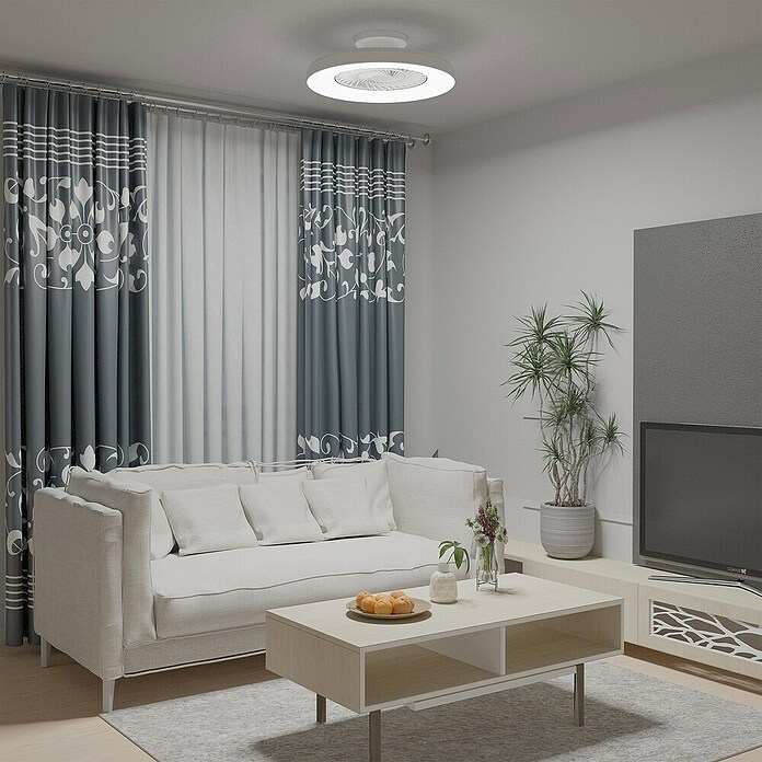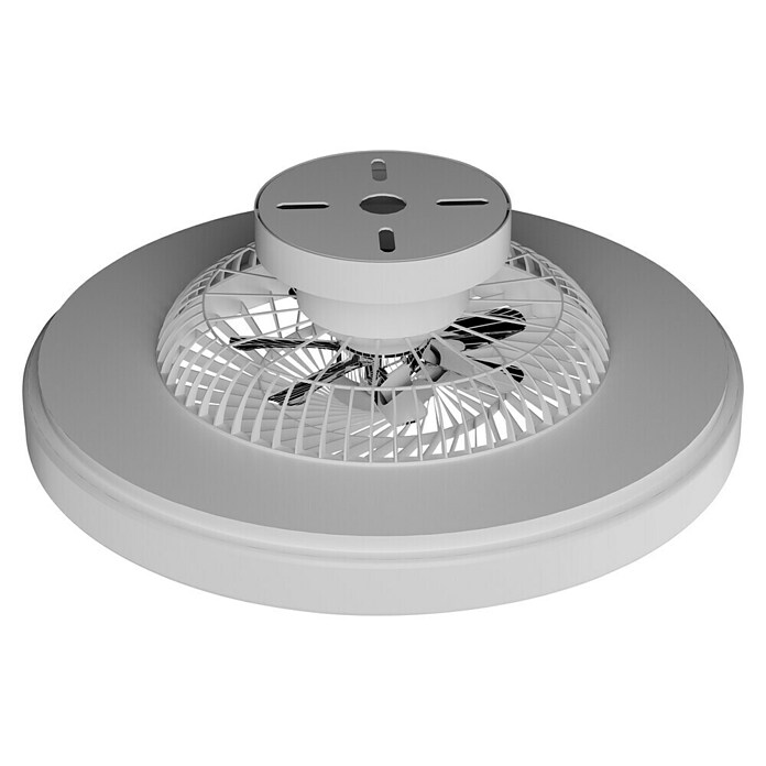El ventilador de techo Bianca con luz LED con marco blanco y aspas ocultas es un modelo que marcará distinción en las habitaciones. Se puede incluir en diversas decoraciones. Su motor DC es muy silencioso y bajo consumo. Tiene hasta 6 velocidades cambiables con su mando a distancia. La luz LED de bajo consumo puede ser regulada en blancos fríos a cálidos dependiendo del momento del día. Destaca este modelo por sus aspas ocultas disfrazadas en la luminaria del techo. Además tiene un altavoz integrado que puedes conectar a tu dispositivo móvil por bluetooth.