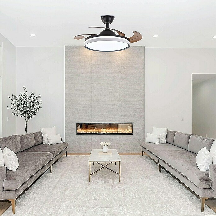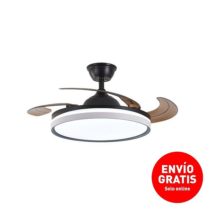 El ventilador de techo Led Hispania con luz LED integrada aporta confort moderno y eficiencia energética. Con su elegante diseño no solo mejora la estética de cualquier espacio, sino que también ofrece un rendimiento del consumo eléctrico excepcional. Disfruta de una circulación de aire eficiente y una iluminación brillante con la tecnología de motor DC (corriente directa) y la luz LED integrada de última generación. Con opciones de control remoto, selección de temperatura de luz y funciones programables de memoria, modo invierno y verano, este ventilador de techo es la elección perfecta para un ambiente fresco, iluminado y sostenible en tu hogar u oficina.